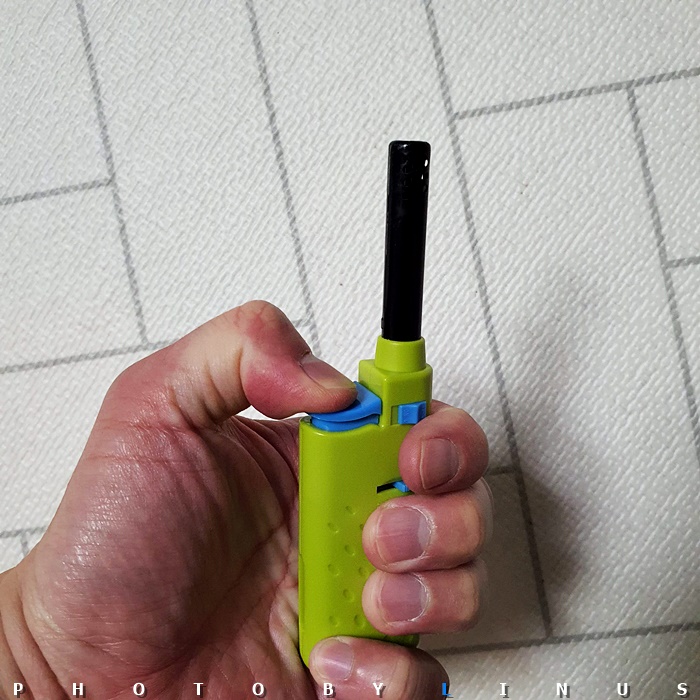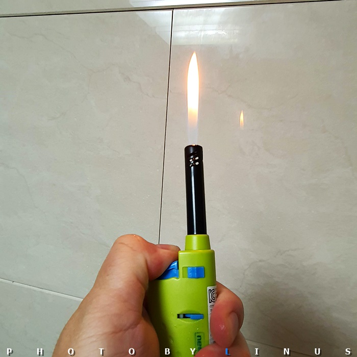 이렇게 라이터를 아래로 가스를 위로 해서...