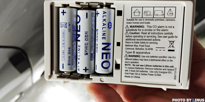 키데 일산화탄소 경보기에 들어가는 건전지는 알카라인 AA 건전지이다.
