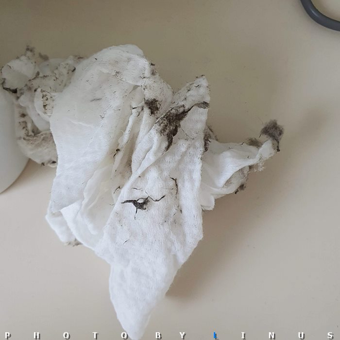 집에서도 사용하고 캠핑장에서도 마구 사용했더니 이렇게나 먼지가 많이 나온다.