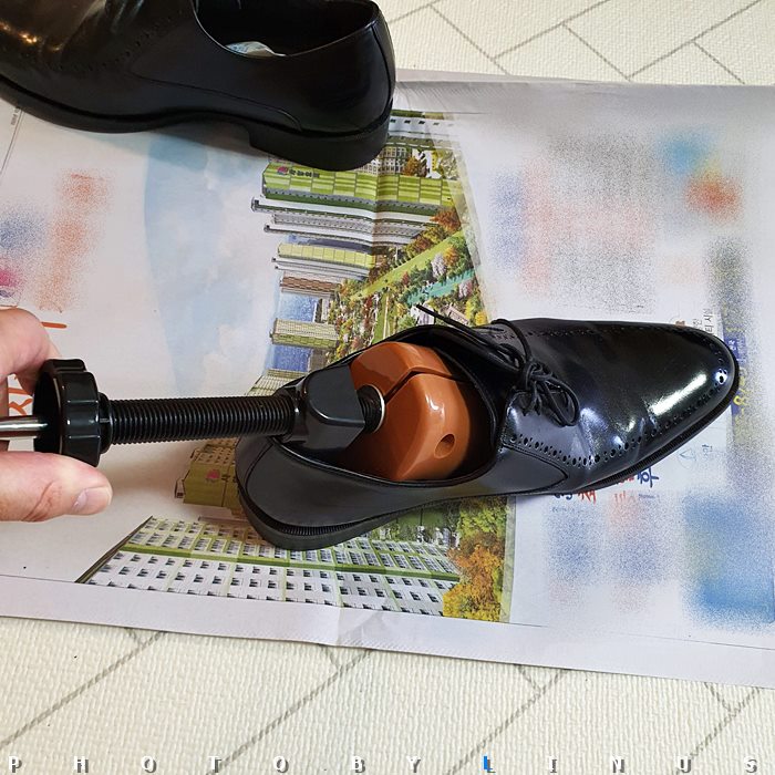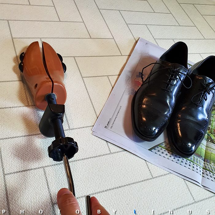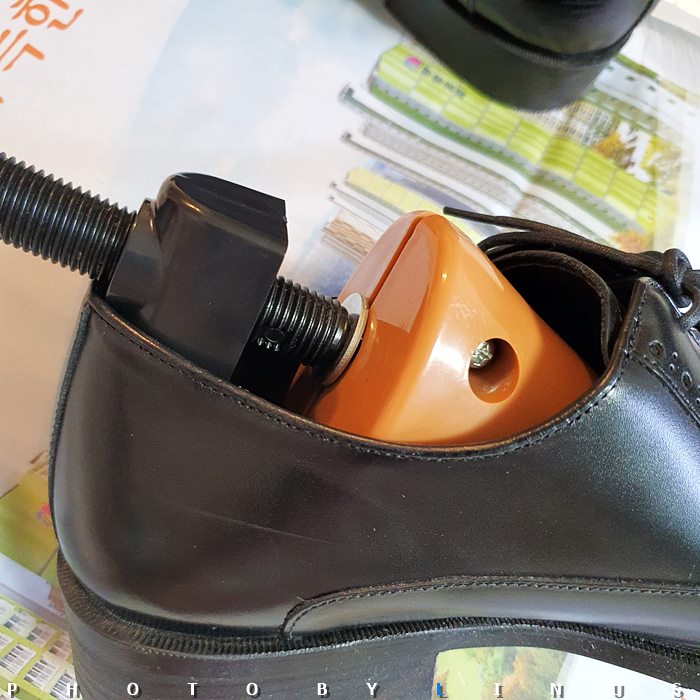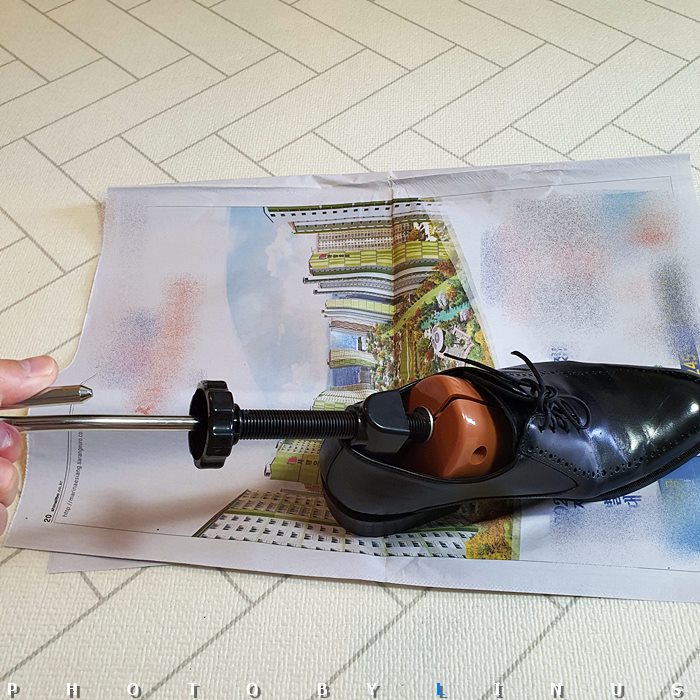 사용방법은 간단하다. 신발에 스트레처를 넣어주고 신발 길이 핸들과 발볼 조절 핸들을 돌려가며 발볼과 길이를 조절하고 하루 정도 두었다가 착용하면 된다. 자, 이제 친절한 라이너스씨와 함께 천천히 따라해보도록하자.