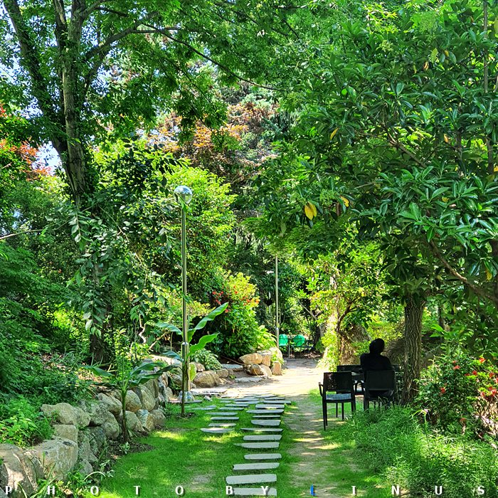 카페 내 정원 곳곳에 의자들이 비치되어있다. 어디든 편하게 앉으면 된다.