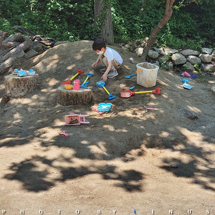 삽과 장난감 등 모래놀이 세트도 구비되어있다. 아이들이 좋아할듯. 수현이도 이곳에서 한 시간을 놀았다.