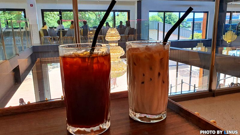 라이너스씨와 뭉이가 주문한 로터스 드립커피(아이스)와 아이스 카페라떼.