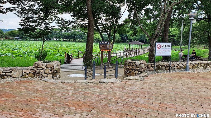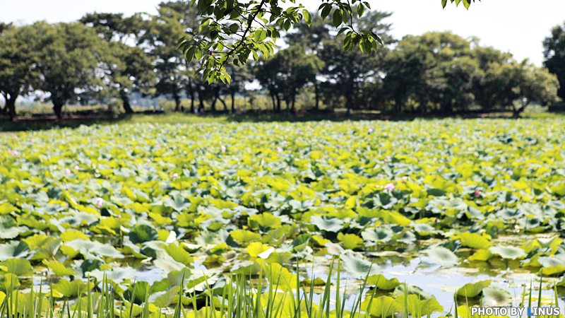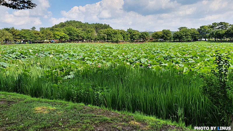 연잎이 푸릇푸릇하다. 해마다 이곳은 연꽃이 필 무렵 찾는 여행객과 방문객이 많다.