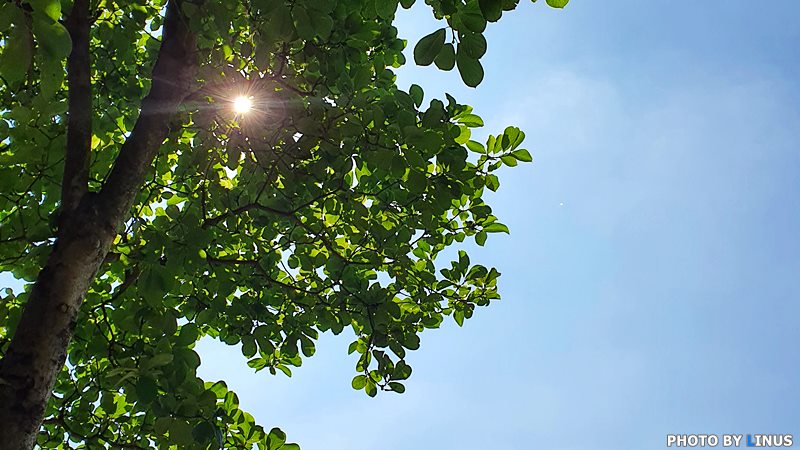 나뭇잎 뒤로 수줍은듯 숨은 햇살...^^