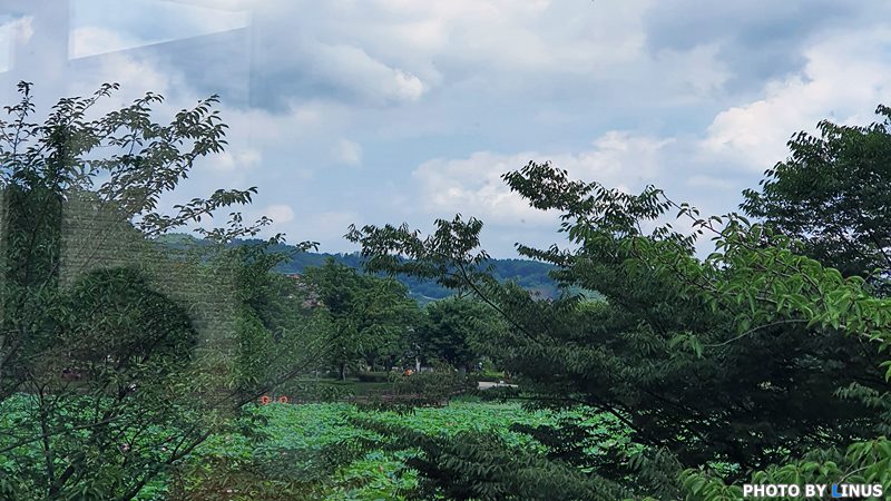 창가 자리에서 보니 강주연못 뷰가 한눈에 내려다보인다. 아름답다.^^