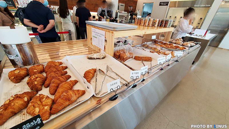 디저트인 빵도 맛있어보인다. 크로와상과 바게트 등 여러가지가 보인다.