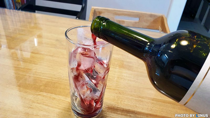 레드와인을 컵의 1/4 혹은 1/5 정도의 비율로 따라준다. 보다 술 느낌(?)으로 취하는 맛으로 와인에이드를 드실 분들은