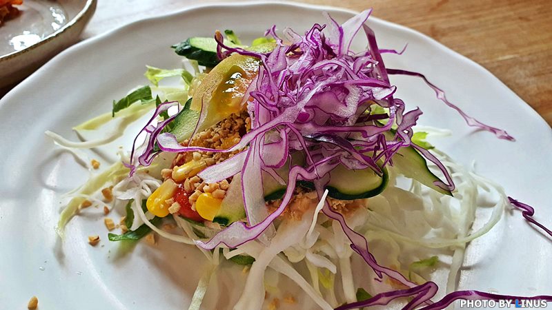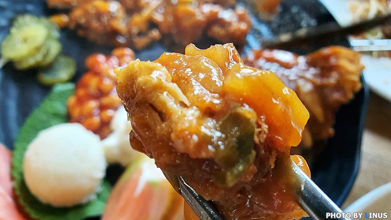 먼저 야채부터 한입. 아삭아삭 새콤달콤한 맛이 그만이다.
