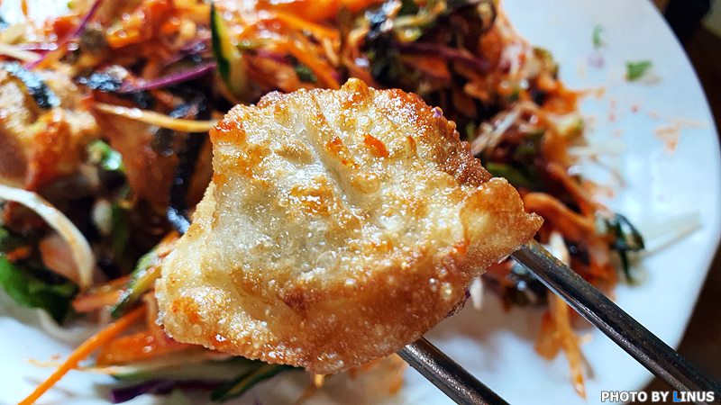 이제 만두. 겉은 바삭바삭하고 속은 촉촉하다. 겉바속초라던가.ㅎ