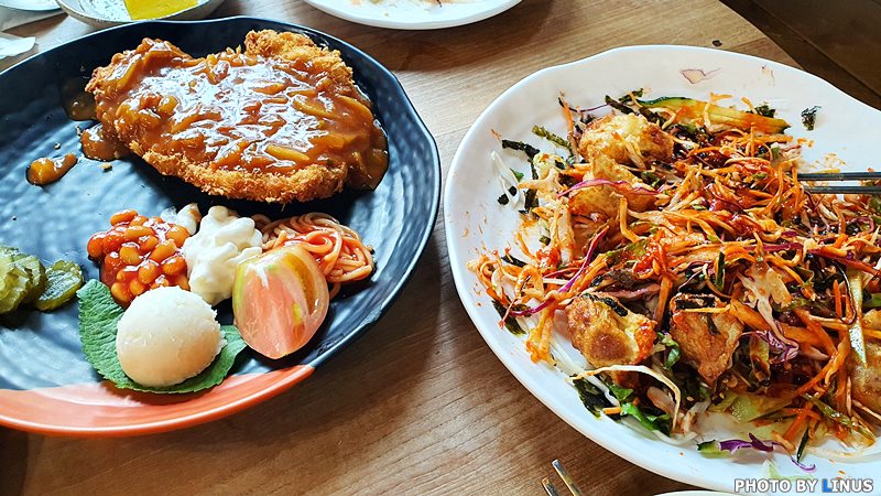 돈까스와 비빔만두 투샷!