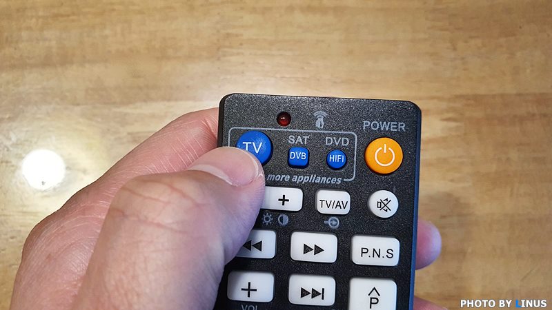 먼저 L336에서 사용하고자 하는 버튼을 누른다. 라이너스 씨는 채널 변경(위)을 위해 P 위 버튼을 선택했다.