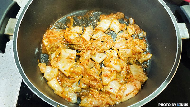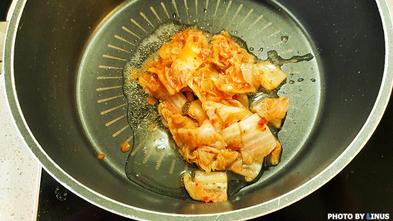 쉰 김치를 준비한다. 일반 김치도 가능하지만 역시 쉰김치가 볶았을 때 특유의 풍미가 있다.