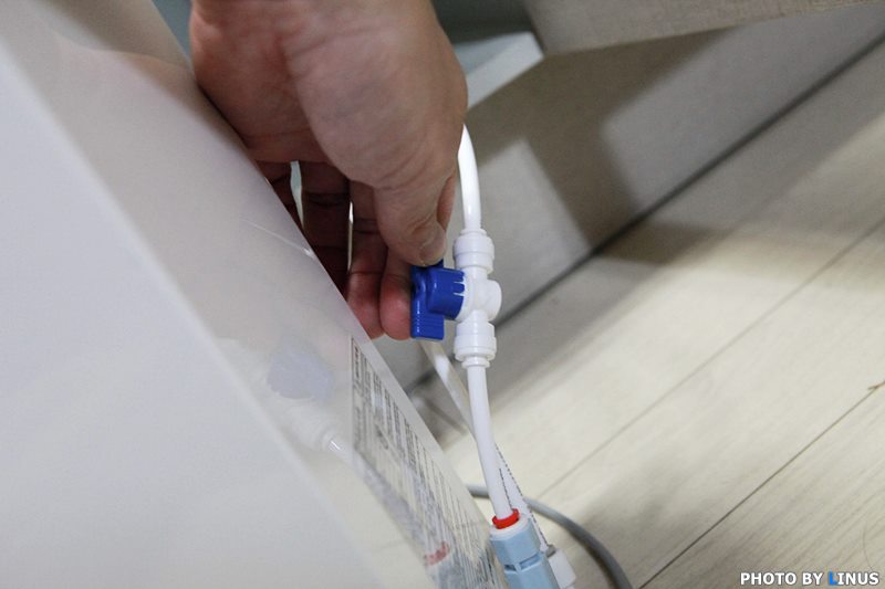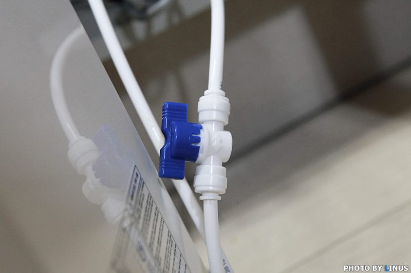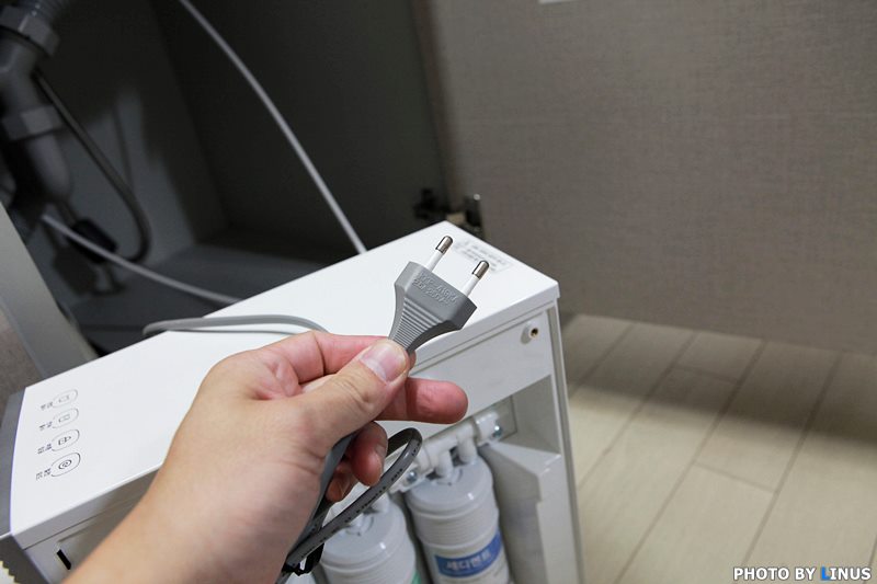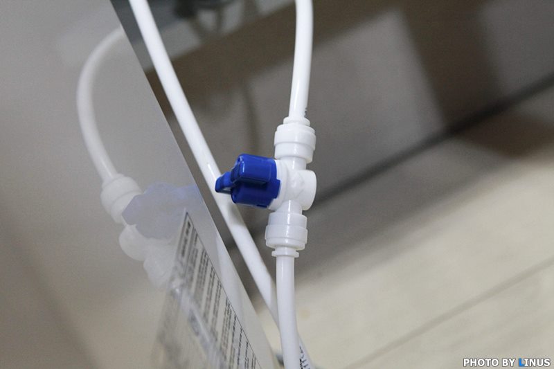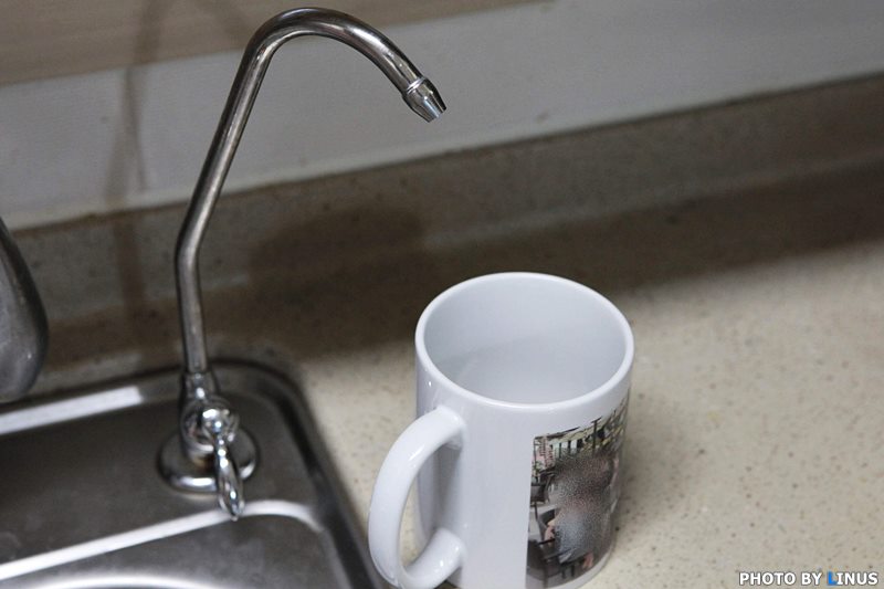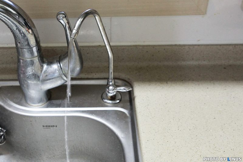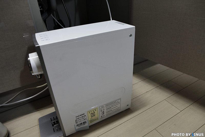 직수형의 경우, 싱크대 상단으로 정수기를 올릴 수도 있고, 이렇게 싱크대 및 언더싱크 방식으로 설치가 가능하다. 라이너스 씨의 경우 싱크대 수도꼭지 옆에 정수기용 수도꼭지를 내서 사용중이라 이렇게 아래로 내려버렸다.