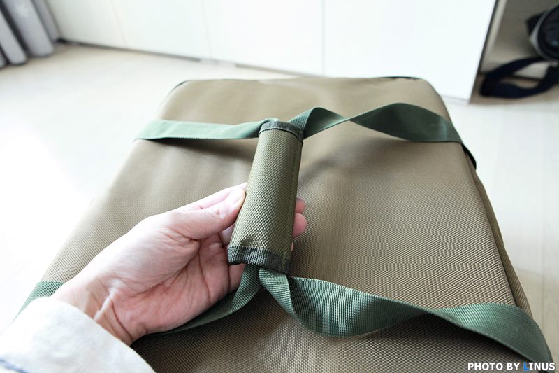 일반 천으로 되어있으면 짐이 많이 들어갈 경우 손이 아픈데... 이건 손에 착착 감긴다. 가방 표면은 폴리1680D에 PVC 코팅이 되어있어 내구성이 좋다.