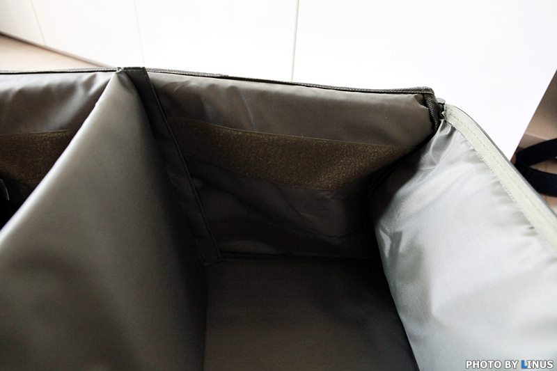 탈부착 가능한 분리형 칸막이 내부 물품의 손상을 방지하기 위해 8MM 폼이 가방 사이에 들어있다.