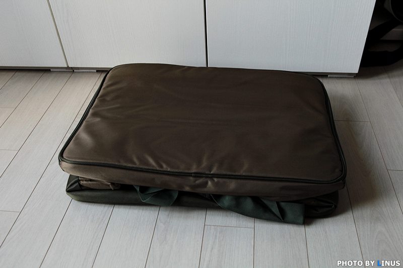 가방에 있는 물건과 칸막이를 빼고 접으면 이렇게 작게 압축된다. 집에서 보관할때엔 수납 공간을 많이 차지하지 않는다.