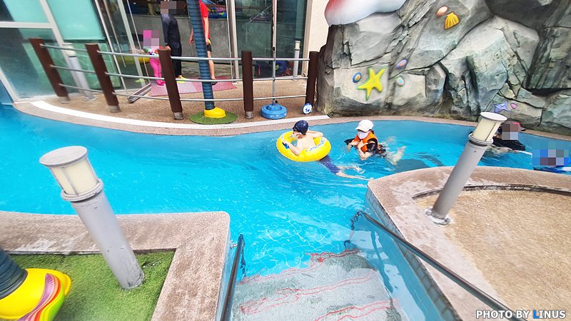 미니 워터 슬라이드도 있어서 아이들이 즐겁게 물미끄럼틀을 타고 내려온다.