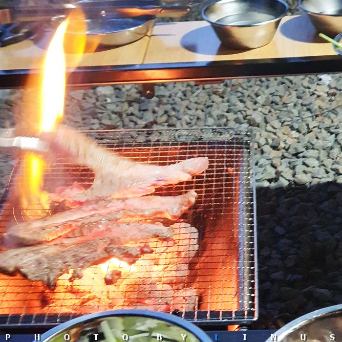 불이야~ 하지만 초보자는 불쇼를 조심해야함~ 그래서 라이너스 씨도 처음엔 돼지고기는 목살만 구웠는데 하다보니 삼겹살도 익숙해진것...^^;
