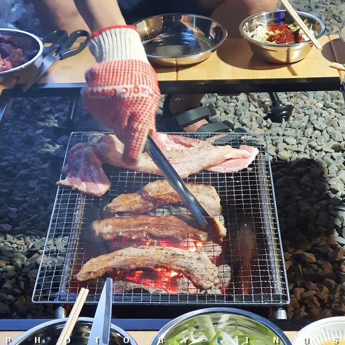 오늘 메뉴는 삼겹살~ 먹는 게 남는거라고 이번 캠핑엔 삼겹살, 가브리살, 광양식 불고기 등... 다양하게 준비해오긴 했는데... 역시 숯불에 구워먹는 삼겹살은 뭔가 이 세상 맛이 아님. ㄷㄷㄷ;