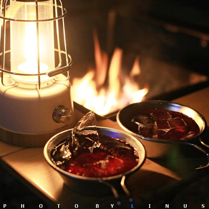 어느덧 밤이 되고... 불멍과 함께 시작된 아내와의 와인 에이드 데이트. 그대의 아름다운 눈동자에 건배...라고 했다가 왜 그러냐고, 뭐 잘못먹었냐고...ㅠㅠ; 아이들은 텐트 안에 들어가 저번 캠포 대란(?) 때 구입한 룸앤티비로 마음의소리 시청중.