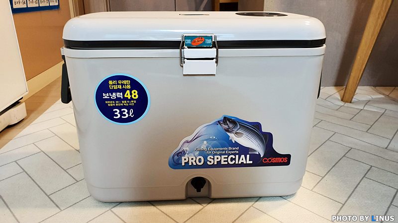 이 물고기 스티커가 붙은 괴랄한(?) 아이스박스는 무엇인가요? 설마 그 감성캠핑 아이스박스라는 그것? ㄷㄷㄷ; 네, 맞습니다! 하지만... 조금만 기다리시면 대변신, 환골탈태하는 모습을 보실 수 있을것이다.^^; 대략적인 스펙을 보자면... 용량 33리터, 재질은 pp수지, abs 수지, 내열온도 80도, 내냉온도 영하 25도, 보냉효력 13도 이하로 보냉효력이란 4도의 물을 넣고 8시간 후의 온도를 말한다. 사이즈는 24 30 33 44 53 55 68 70 등 다양한 사이즈가 있는데 라이너스 씨의 경우는 뒷좌석 레그룸 아래에 딱 맞는 사이즈인 33리터로 추천!
