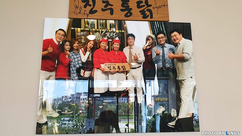 진주통닭의 시그니처라 할 수 있는 닭찜(매운연근닭찜)을 주문해놓고 기다리는 중. 생생정보, 백종원의3대천왕, 생방송투데이 등에 출연한 유서깊은(?) 맛집이다. 1973년부터 장사를 시작했으니 거의 50년이 다 되어간다고... 벽에는 백종원의 3대천왕 때 출연한 사진과 사인이 걸려있다. 당시 찜닭 VS 치킨편에 안동 구시장의 중앙찜닭, 이곳 진주통닭, 서울 풍납동 감미치킨, 울산 전하동 북경통닭과 함께 나란히 출연했다고... 사진에는 주방장님과 백주부 백종원, 맛있는 녀석들로도 유명한 김준현, 이휘재, 소유 등 연예인들도 보인다.ㅎ