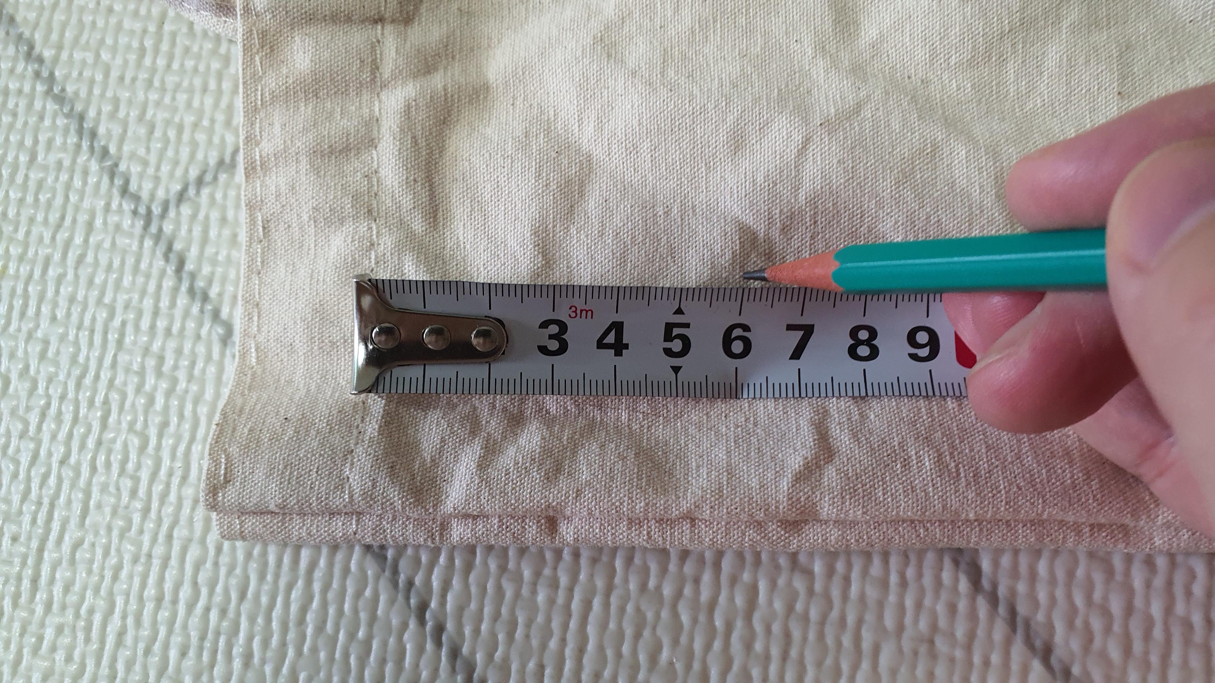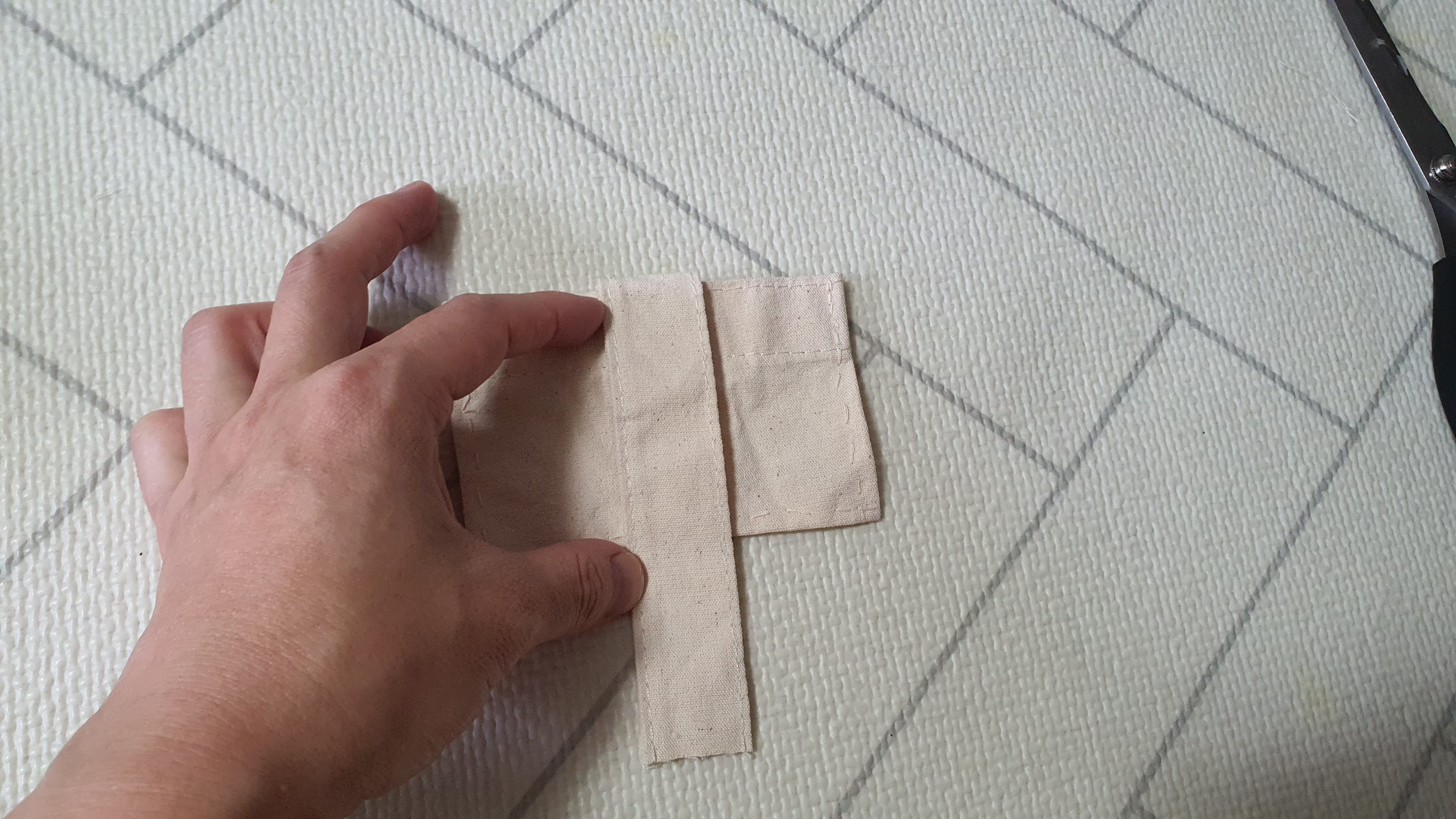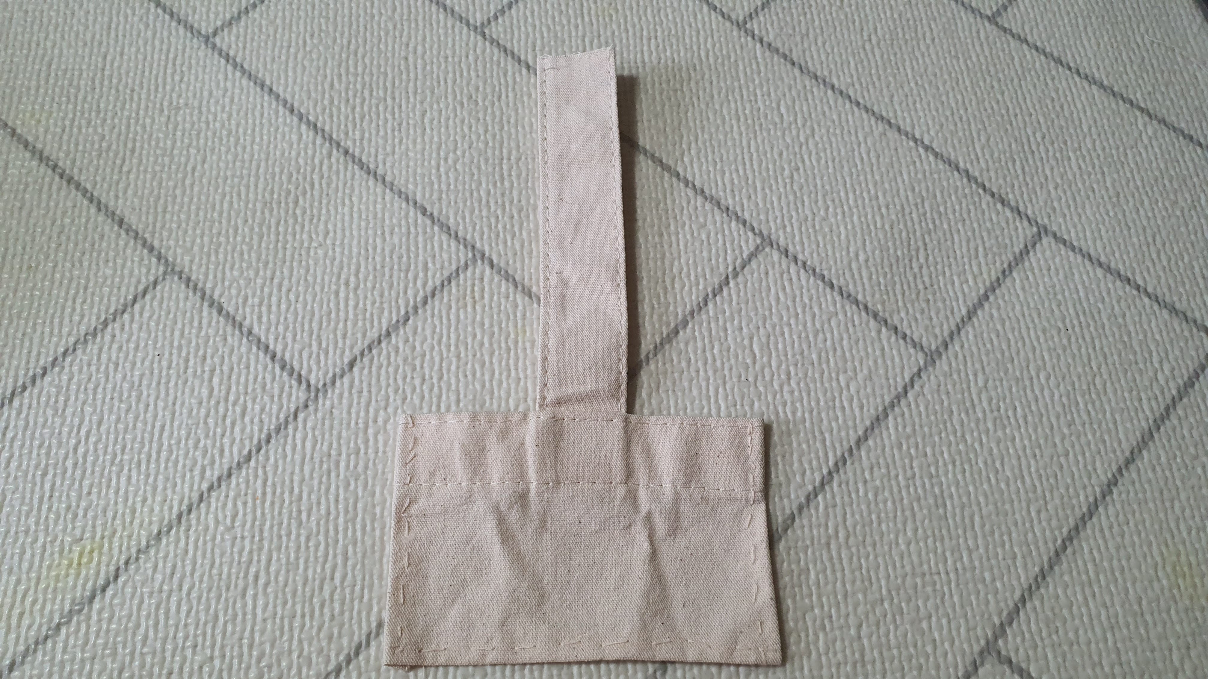 반보다 조금만 더 감싸주면 되니 대략 6cm정도로 길이를 잡았다. 아래부분은 접어서 바느질할 부분이라 2cm정도 남겨두었다. 이때 주의할 점은 손잡이를 위쪽에 남겨놓는것.