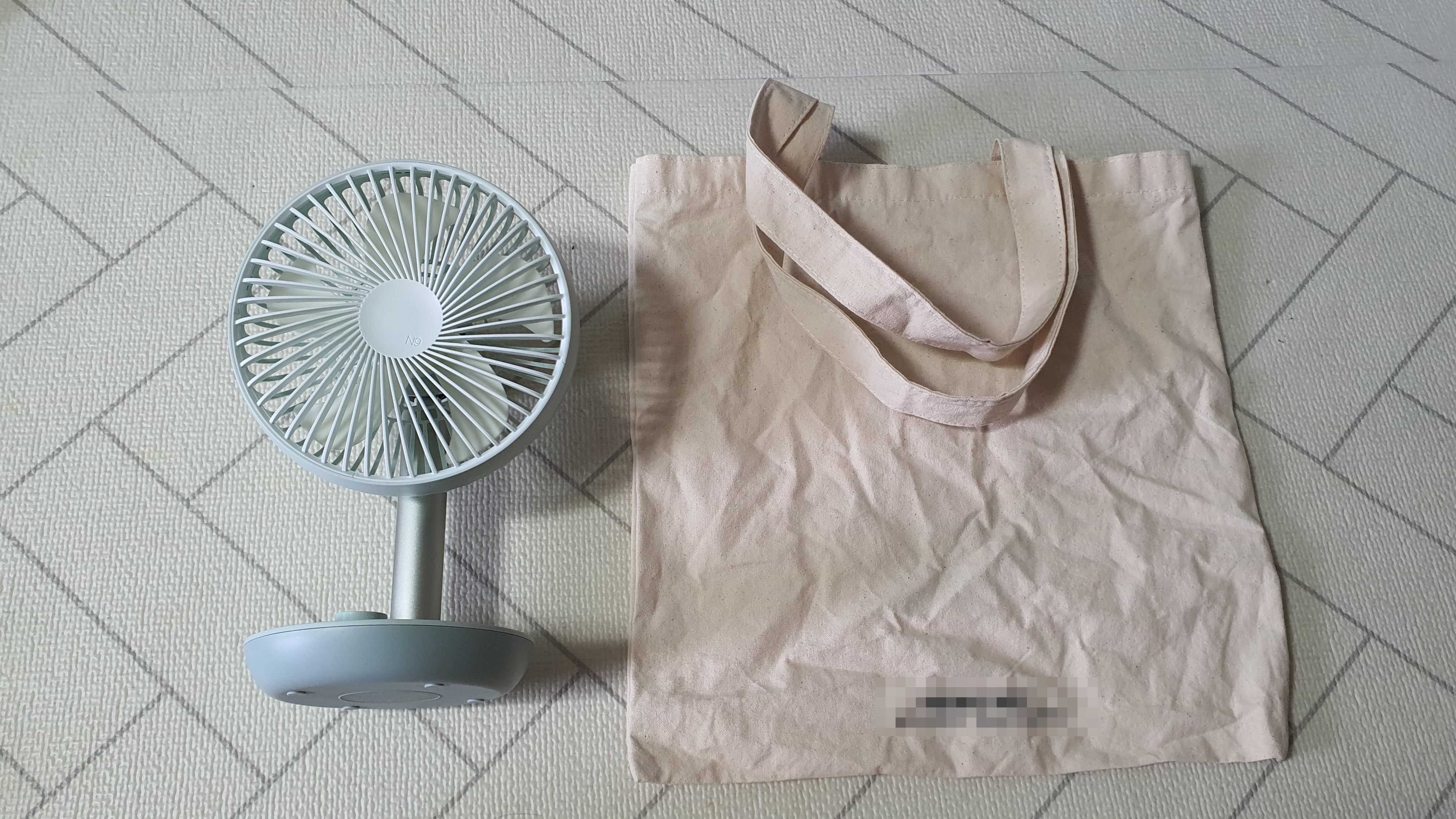 준비물은 루메나 충전식 무선 선풍기 3세대(1,2 세대도 가능)와 안쓰는 에코백이면 OK.