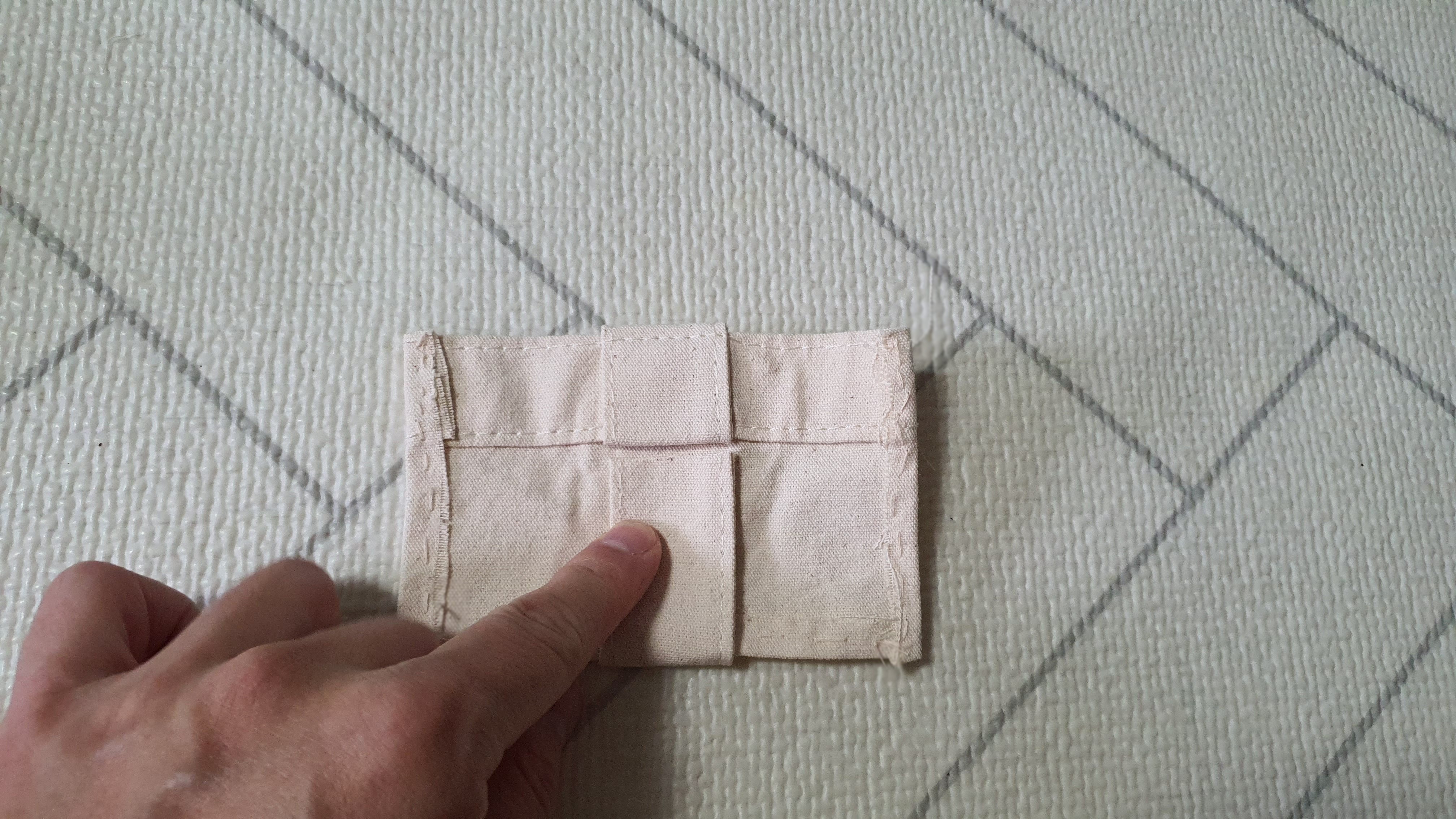 옆쪽과 아래쪽은 안으로 접어서 바늘질 해주었다. 더 예쁘게 할 수 있었지만 안쪽이라 안보이니 적당히...^^;