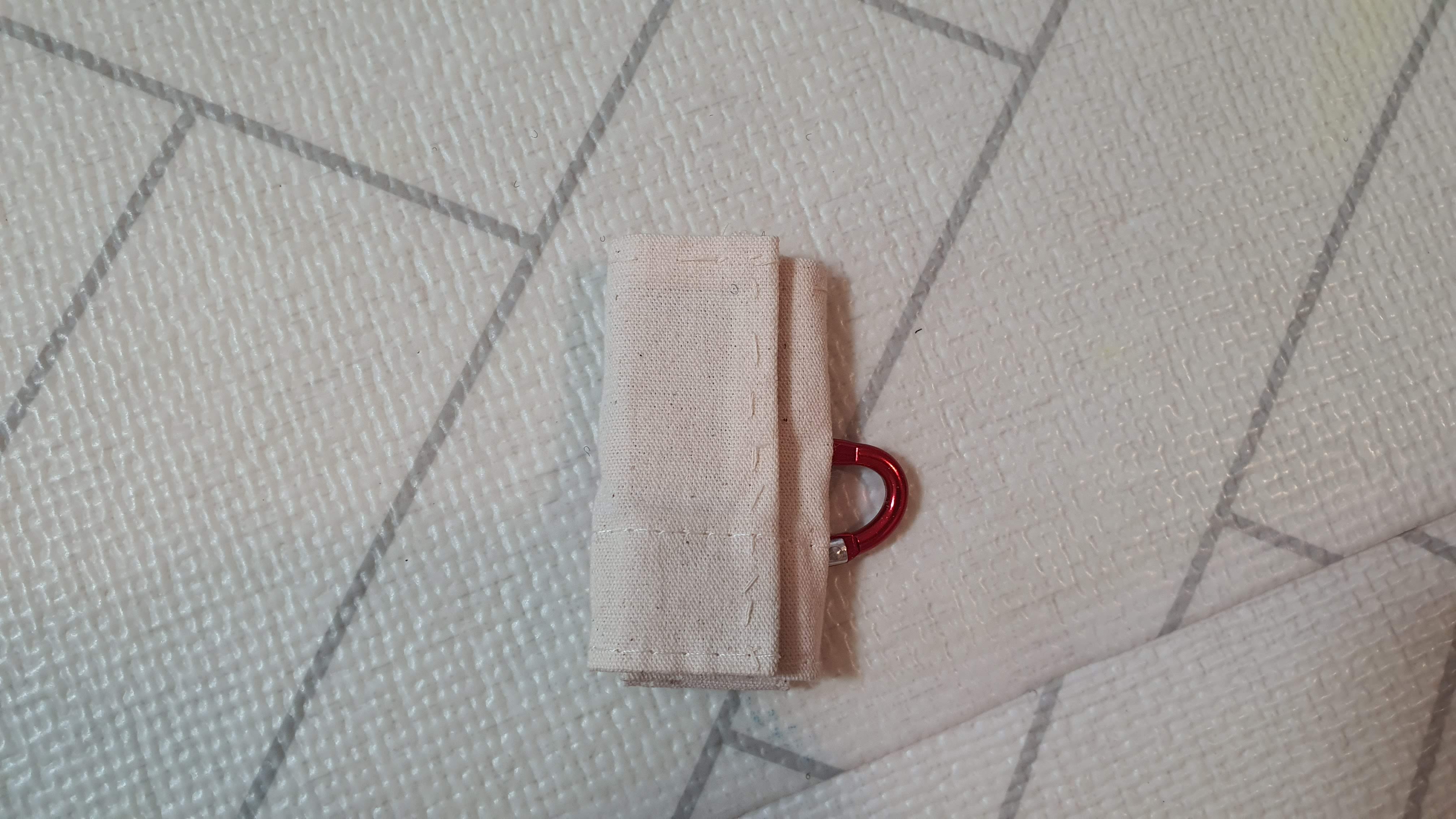 뒷면에는 에코백 손잡이를 연결한 부분의 틈이 있어 뒤에 저렇게 카라비너(없으면 끈)를 끼우면 된다.