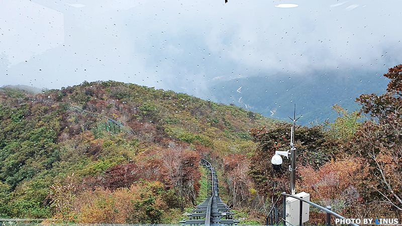 비도 간간히 흩뿌리지만... 모노레일안에서는 문제 없다. 다만 산에 올라오니 온도가 낮아 제법 춥다. 옷을 더 따뜻하게 입고 올걸...ㅠㅠ;