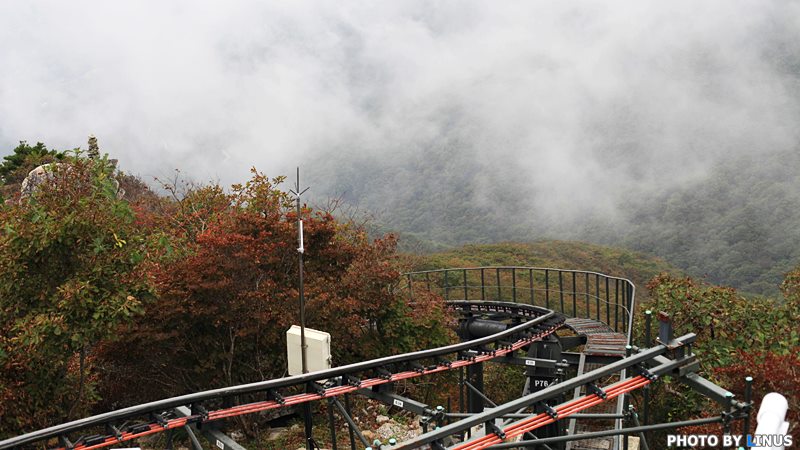 안개인지 운무인지... 멋진 산경을 보기엔 시야가 좀 가리긴하지만 안개속을 헤치고 지나가는 모노레일도 나름 운치가 있다.^^