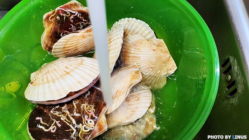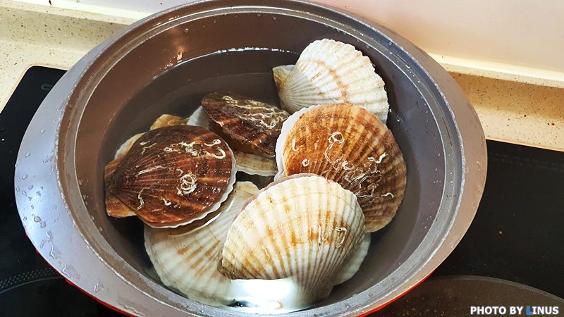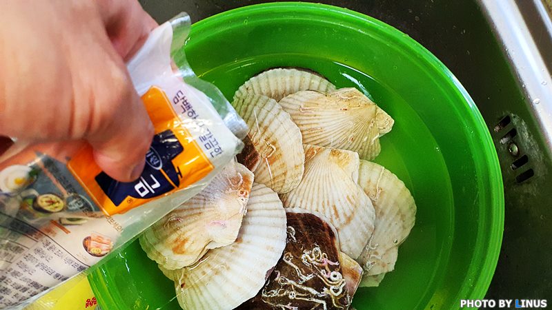 가리비 손질방법은 간단하다. 먼저 물에 잘 씻어서 이물질을 씻어내 준다.