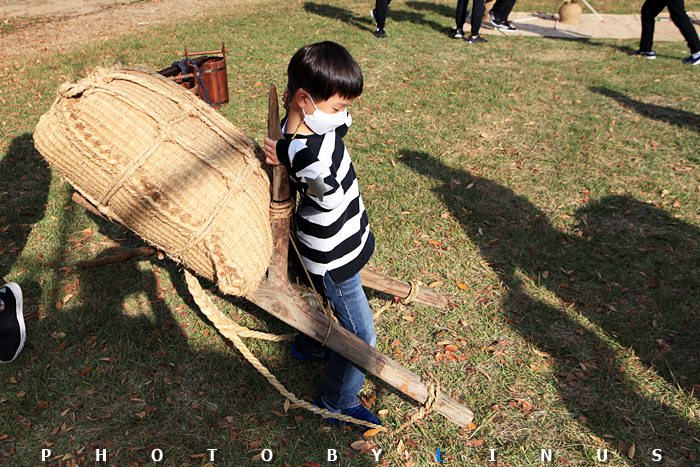 곤장맞기 체험을 해보는 아이들.ㅋㅋ
