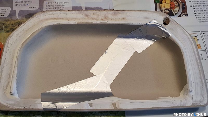 본드만으로도 잘 붙은 거 같지만... 혹시나 해서 집에 있던 알루미늄 덕트 테이프로 깨진 뒷면을 한번 더 붙여주었다. 알루미늄 덕트 테이프는 공사용이나 차량 임시 수리용으로도 주로 쓰이는 제품인데 다이소에서 저렴하게 구입 가능하다.