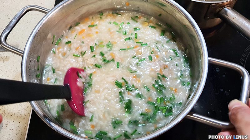 죽이 냄비에 눌어붙지않도록 잘저어주며 끓이자.