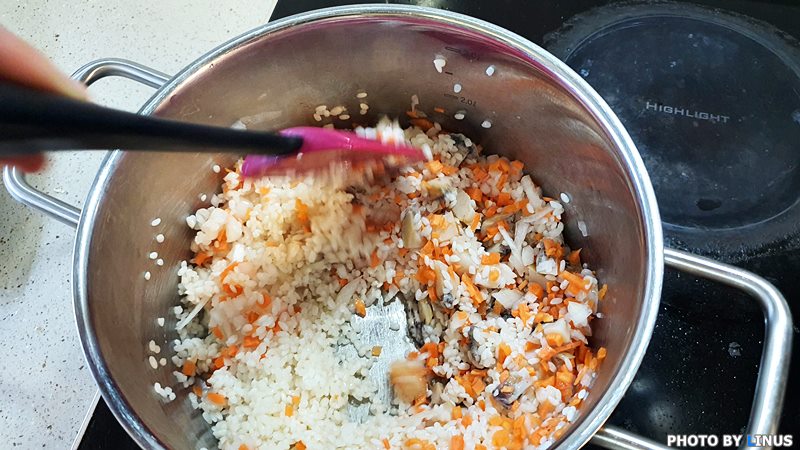 그리고 쌀이 투명해질 떄까지 적당히 불에 볶아준다.