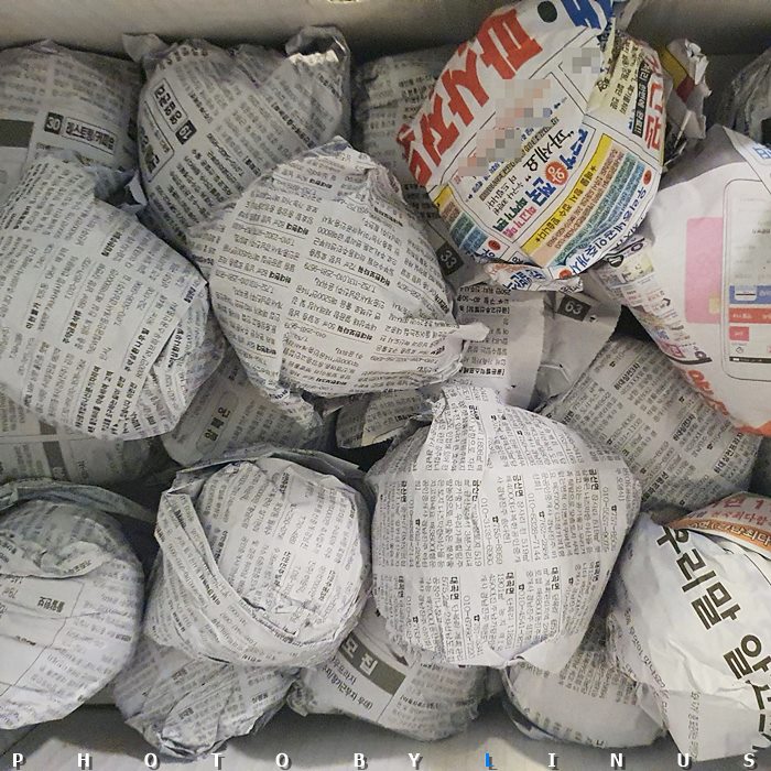 이렇게 양파가 겉으로 노출되지않게 잘 감싸준다. 이렇게 양파를 신문지로 개별 포장을 해주면 신문지가 양파에 생길 수 있는 습기를 잡아주고, 겨울철 양파가 얼지않게 적정 온도도 유지해주고, 혹시 양파 하나가 곰팡이가 피거나 썩기 시작하더라도 주위의 다른 양파에 옮기는 것을 예방해준다.^^