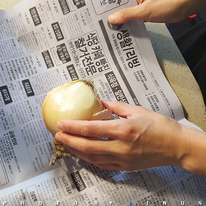 양파를 신문지로 개별 포장하는 게 가장 좋은 방법이다. 적당한 크기의 신문지를 준비해서...