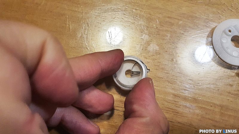 그러면 이런 모습이다. 여기서 중요한 부분이 바로 왼쪽 큰 원 부분. 이 부분을 살며시 비틀어 들어내자.