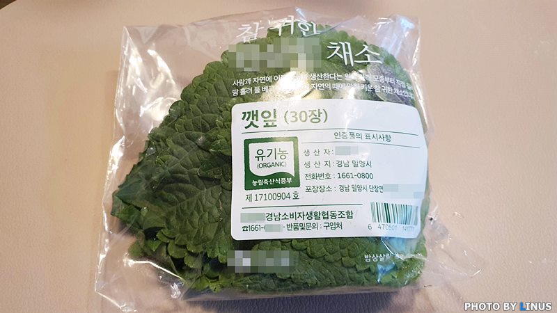 라이너스씨네가 즐겨찾는 한살림에서 사온 유기농 깻잎.