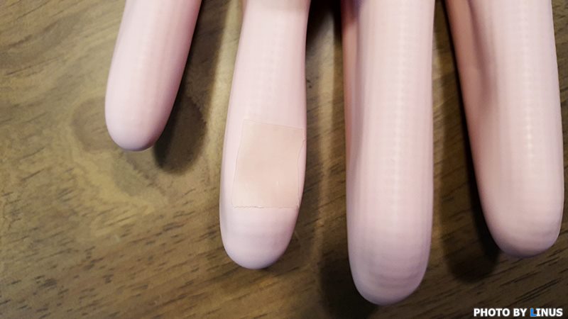 고무장갑의 찢어진 부위에 잘 부쳐준다. 흡사 수선패치처럼...