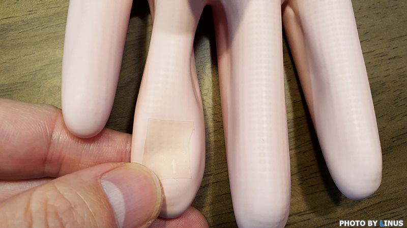 고무장갑의 찢어진 부위에 잘 부쳐준다. 흡사 수선패치처럼...