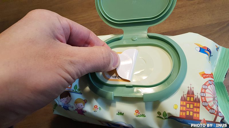 보통 물티슈를 개봉하시면, 안에 안심스티커가 있고...