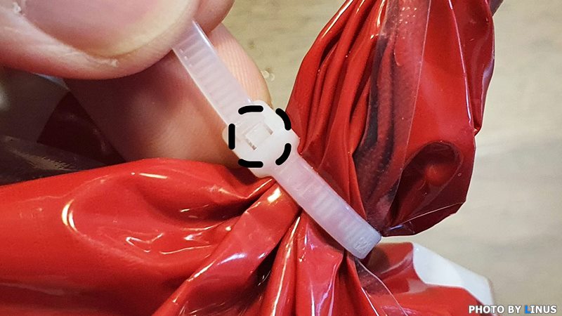 결국은 이렇게 봉지 자체를 잘라내는 방법밖에...ㅠㅠ 케이블타이도 그대로 쓰레기통으로 직행이다. 그렇다면 케이블타이와 비닐봉지에 손상을 입히지않고 깔끔하게 제거하는 방법은 없을까?