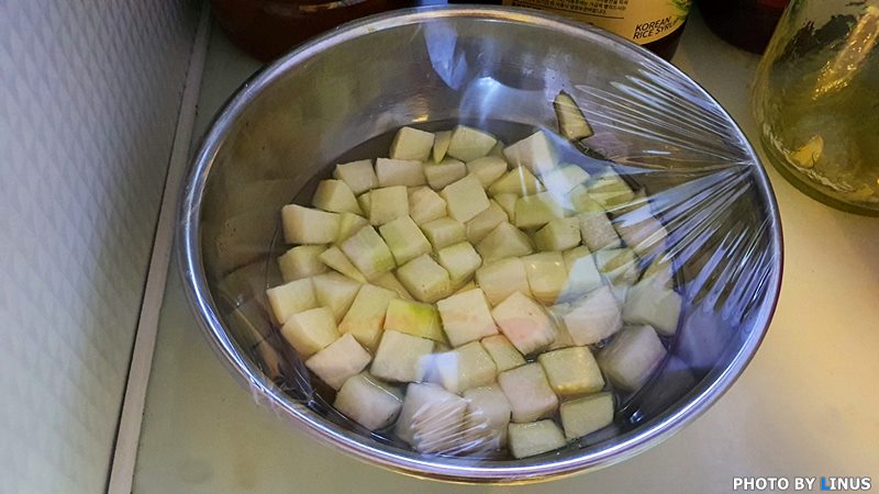 1시간이 지나면 무에서 흘러나온 국물을 버려준다.