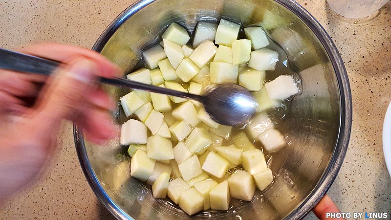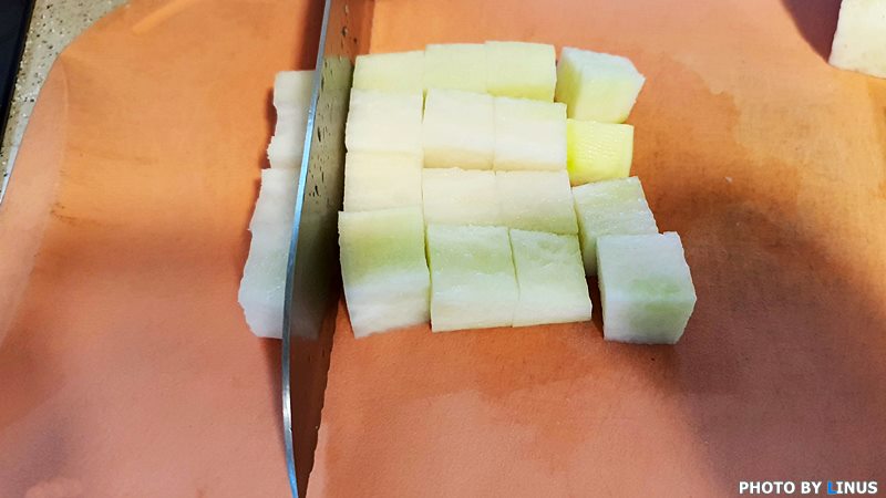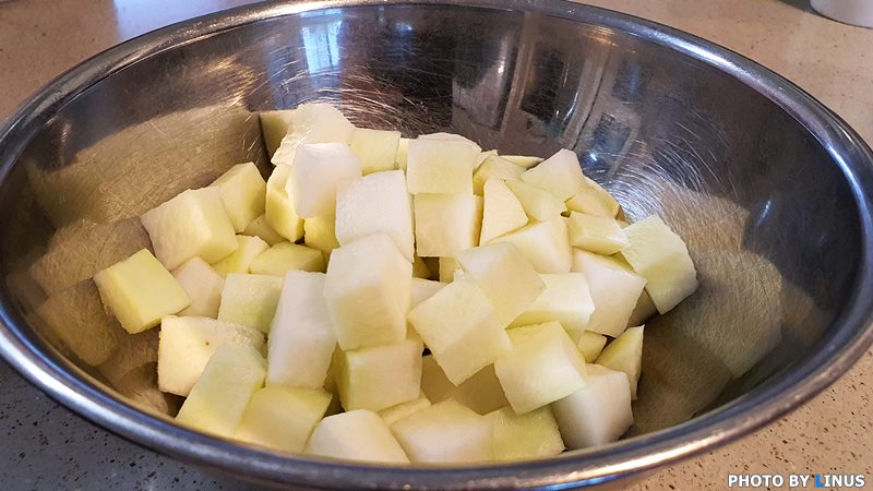 깍두기를 만들때처럼 깍뚝썰기를 해준다.