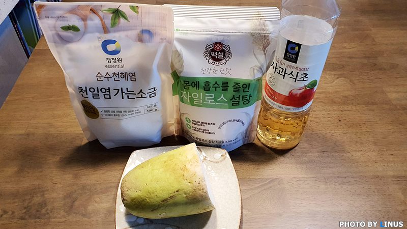 치킨하면 가장 생각나는 건 무엇일까? 물론 치맥이란 말이있듯 맥주나 콜라가 먼저 생각나시는 분들도 있으시겠지만 치킨과 더불어 우리의 입맛을 책임져주는 또다른 일등공신이 있었으니 그건 바로 치킨무! 하지만 시중에서 파는 치킨무는 유통기한을 길게하려다보니 왠지 안좋은 성분(주로 빙초산)도 좀 더 많이 들어있을 것같고 맛도 너무 자극적이다. 그렇다면 치킨무를 먹으면서도 보다 건강하게 먹을 수 있는 방법은 없는걸까? 그래서 준비했다. 친절한 라이너스 씨의 '치킨과 영혼의 단짝, 치킨무! 새콤아삭 치킨무 만드는법 레시피! [무초절임]'