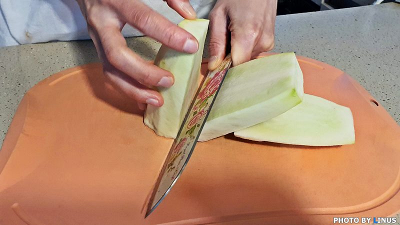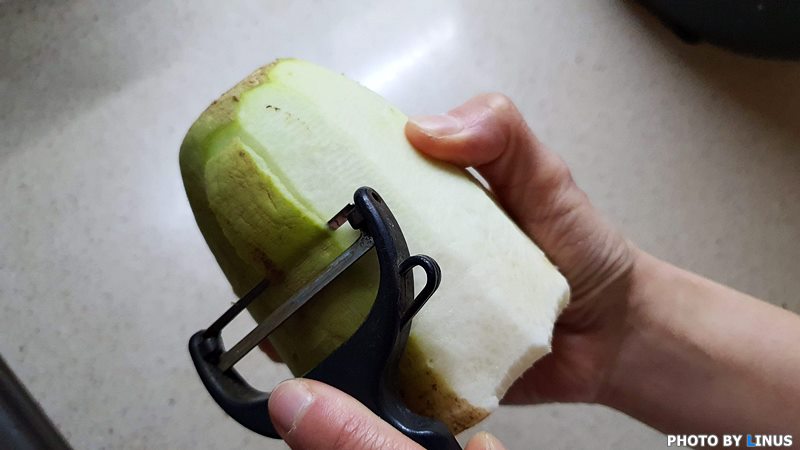 먼저 무껍질을 벗겨주고...